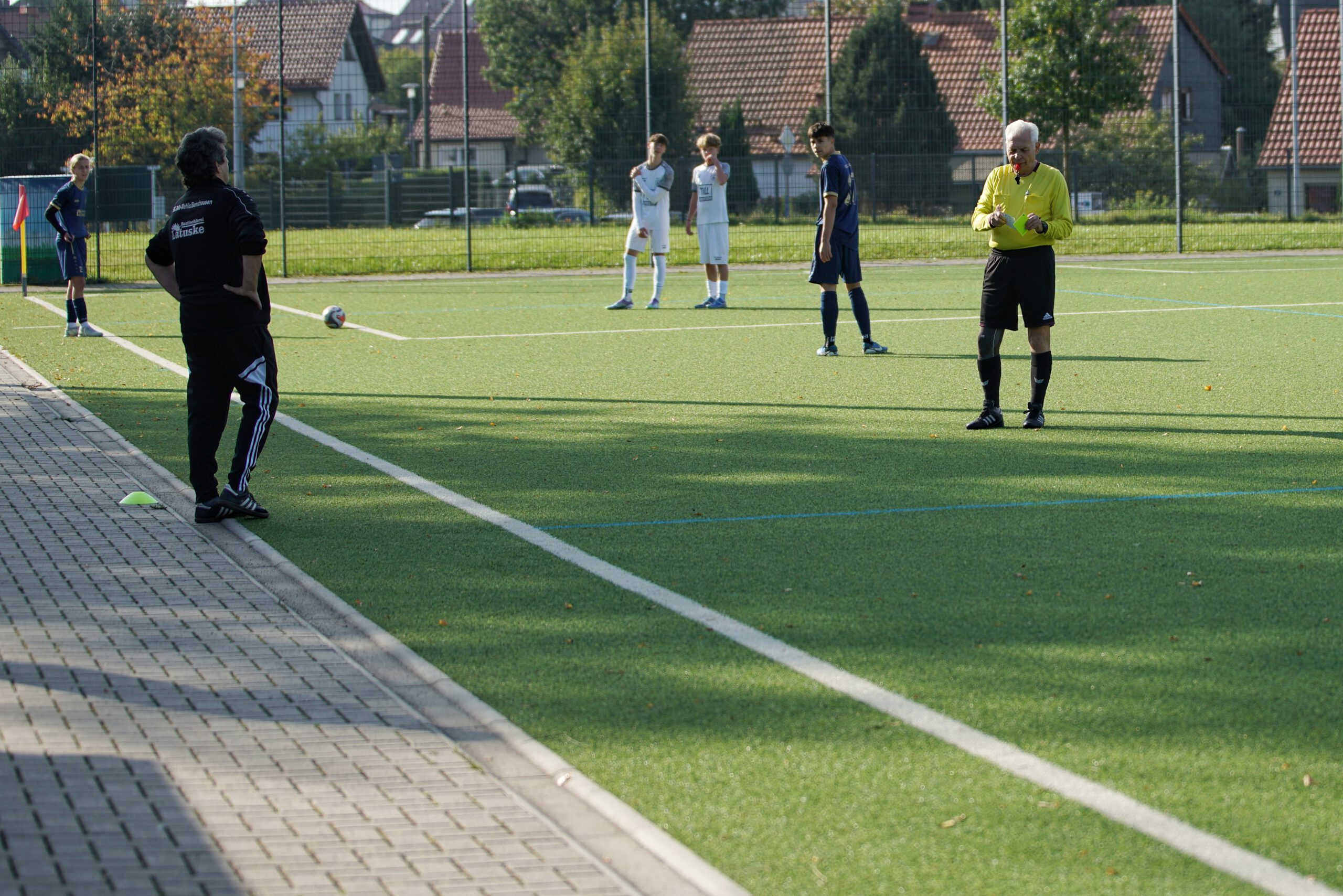 Pünktlich standen beiden Teams zum Einlaufen bereit und es wurde nochmals bewusst auf ordentliche Schienbeinschoner durch den Schiedsrichter hingewiesen! Safety First, was so manch ein Mini-Streifen im Fall der Fälle sicher nicht ganz erfüllt. Mit dem Anpfiff sind die Gastgeber mit frühem Pressing im Spiel.