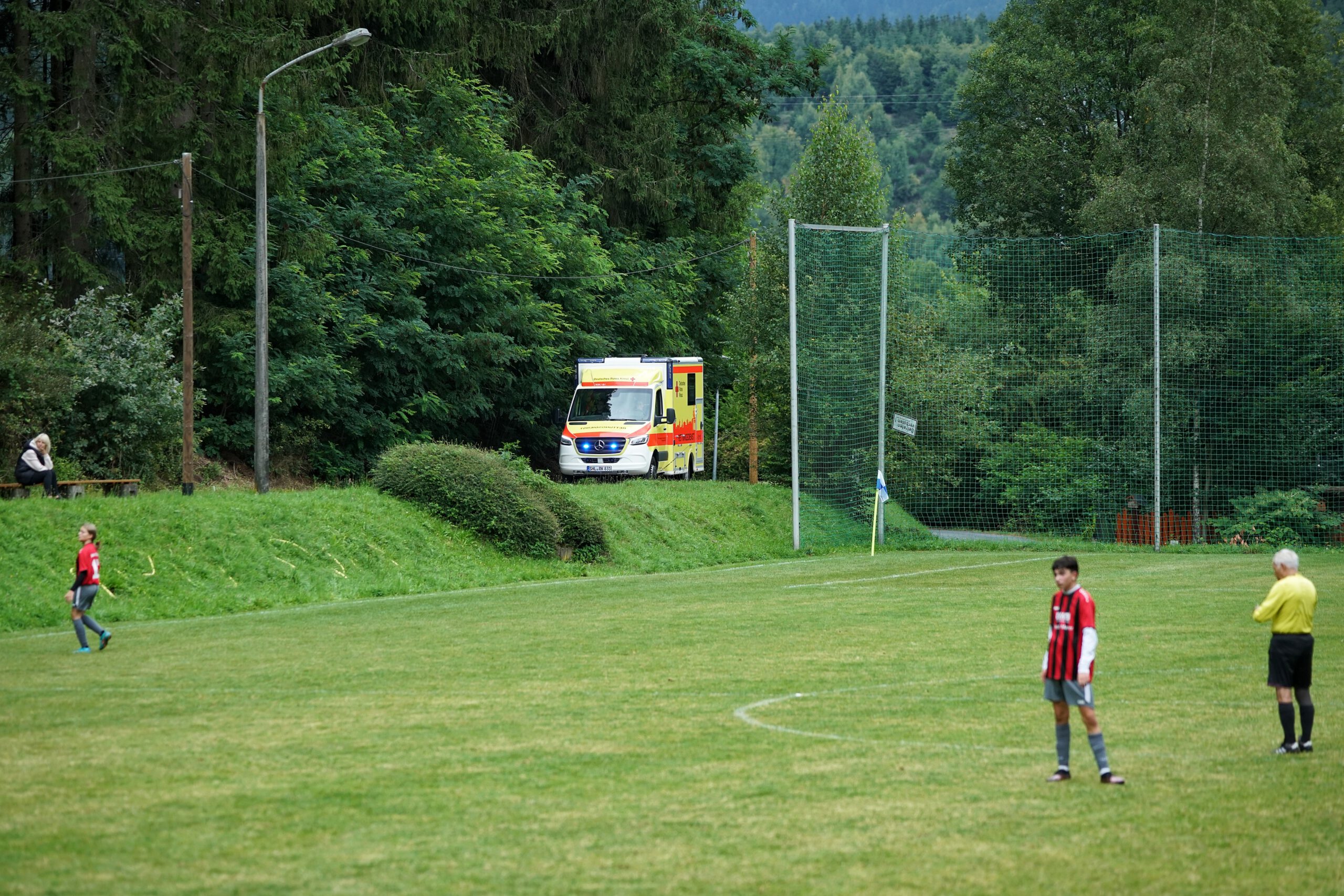 Mit dem Halbzeitpfiff wurde der verletzte Spieler zum Krankenwagen gebracht, erste Genesungswünsche wurden überreicht und auch von meiner Stelle hier nochmal gute Besserung!