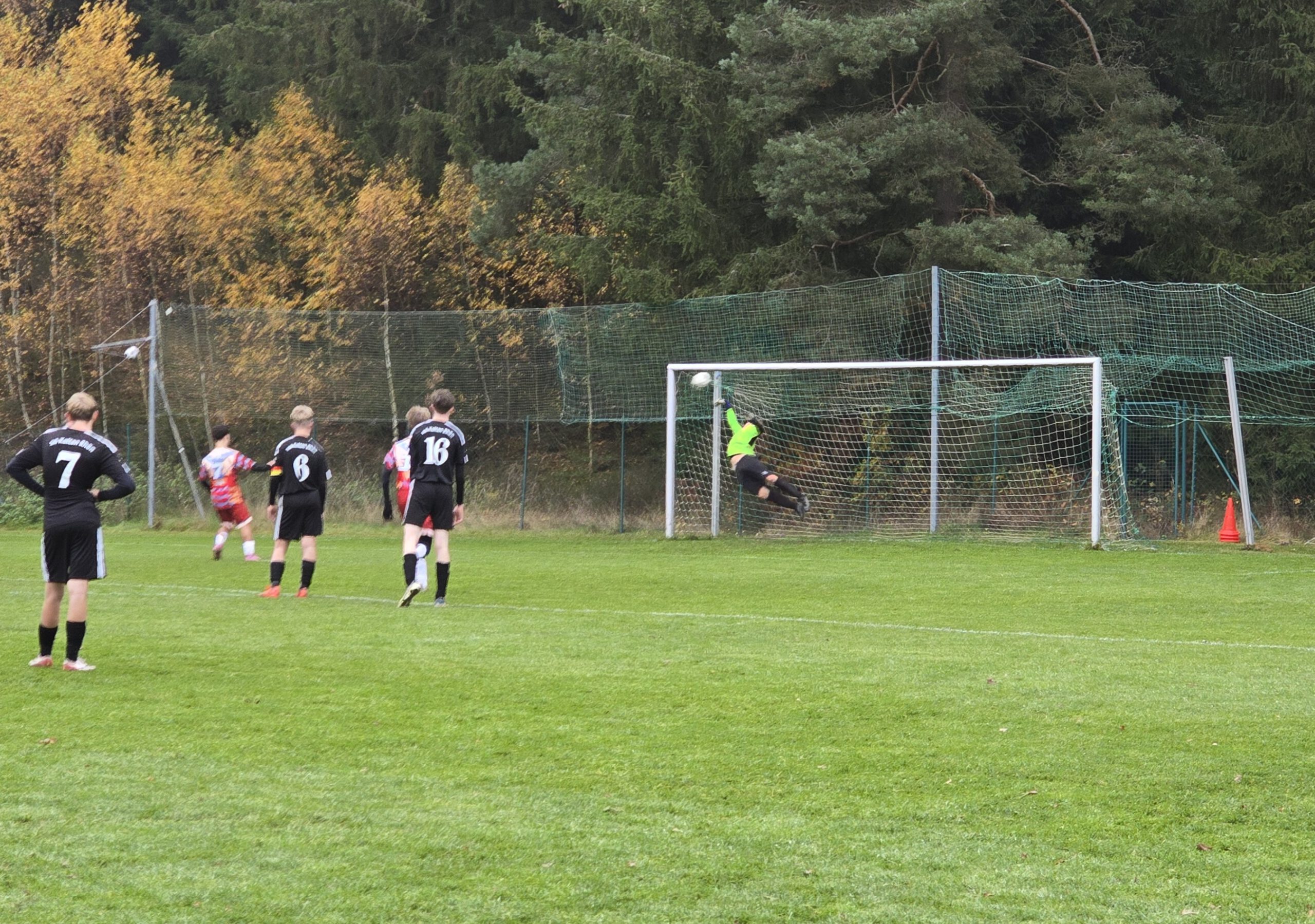 Die Köpfe hingen glücklicherweise nur kurz und die Hausherren pushten und trieben sich weiter an. Ein erneutes Foulspiel der Gäste in deren Strafraum brachte die erste Gelbe Karte der Partie und den zweiten Strafstoß für die Gastgeber. Kaum zu glauben, aber auch dieser wurde zu ungenau geschossen und der Keeper parierte auch diesen stark.