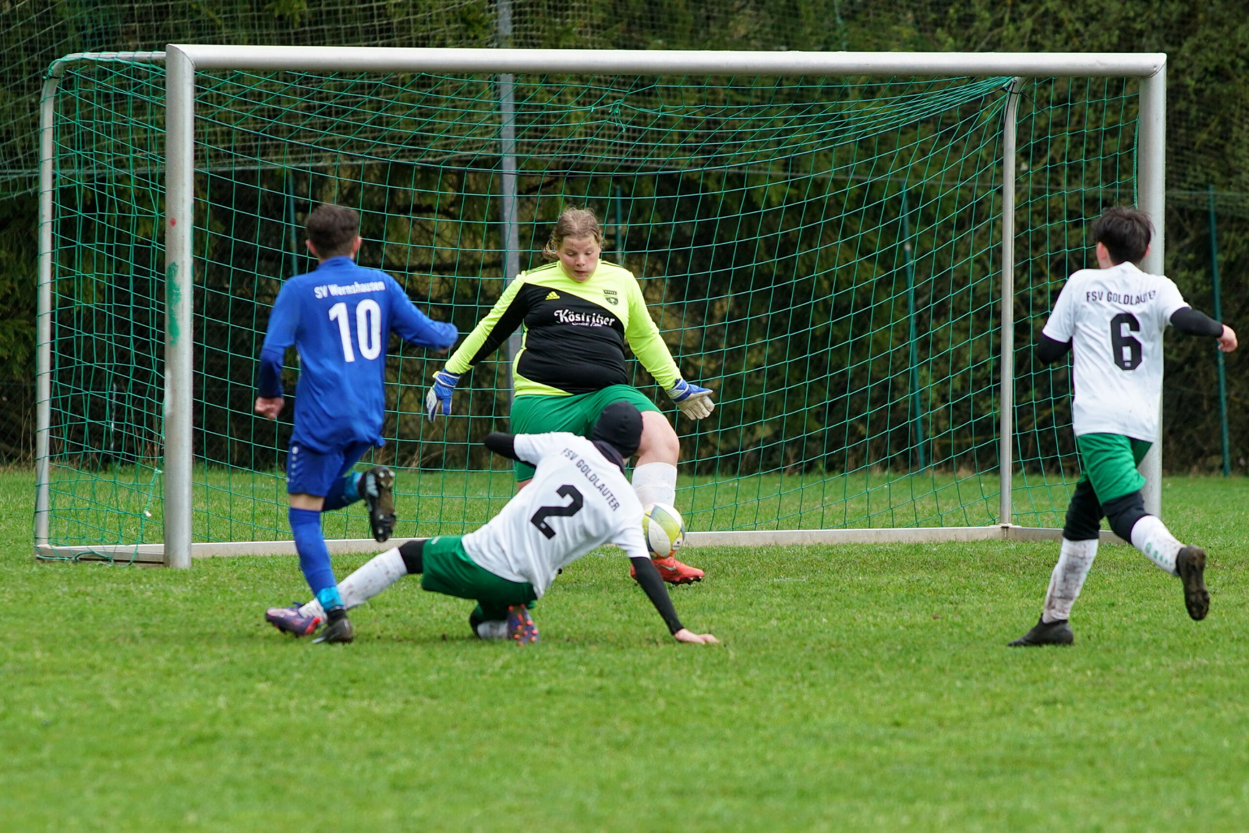 Der Regen ließ mit Beginn der 2.Halbzeit etwas nach, was uns wahrscheinlich nicht so in die Karten spielte. Die Gäste aus Wernshausen gaben jetzt doch deutlich den Ton an und es war schon förmlich Powerplay auf ein Tor. Mehrfach konnte der Keeper den Kasten in höchster Not noch sauber halten.