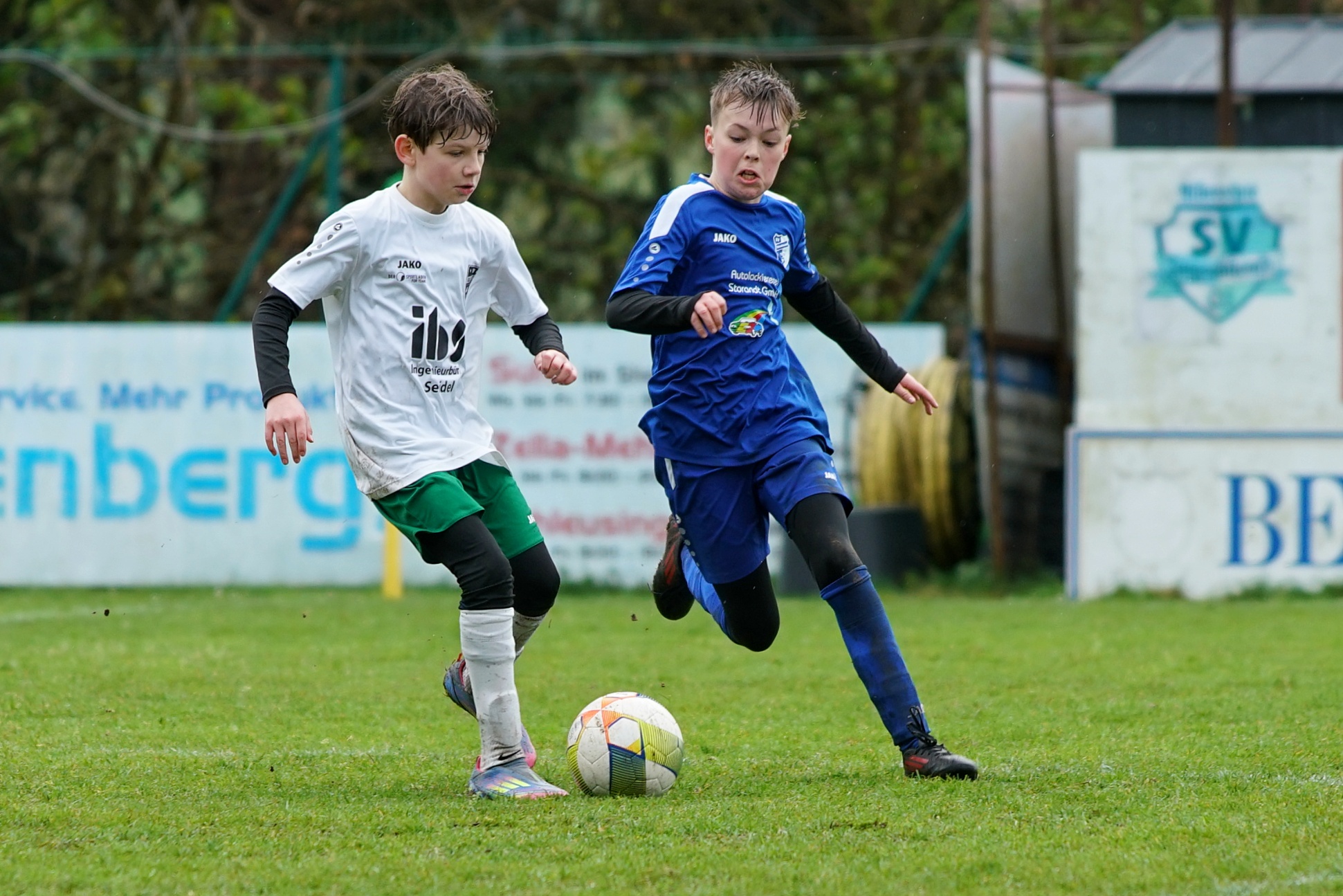 Es hörte doch tatsächlich auf zu regnen und mit einer großen Moral kämpfte man sich zurück in die Partie. Packende Zweikämpfe, die unterm Strich immer fair blieben, bereicherten dieses spannende Spiel. Der Ausgang von diesem stand förmlich auf Messers Schneide, aber ein Doppelpack kurz vor Ende der Partie brachte uns auf die Siegerstraße.